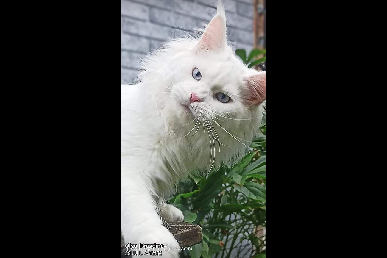 Olaf Warm Purr, Race :Maine coon, Robe :White, yeux bleus (w61).